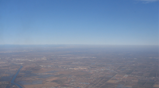 感觉有些累了,小憩一会。突然感觉飞机有少许颠簸,便醒了过来。也不知过了多久,耳膜有些疼痛,原来飞机已经开始下降高度了。可以清晰地看到底下一块块整齐到耕地,村庄与村庄之间似乎没隔几块地。只是冬日的北方平原少了绿色,不那么好看。